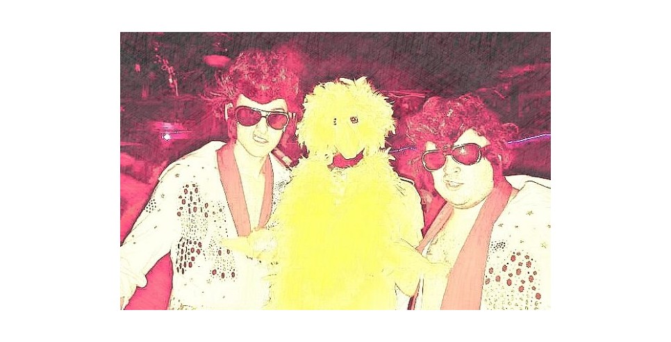 So where would you have to go, besides a drug-induced dream, if you wanted to see Josh Wesson dressed as a bird while rapping karaoke-style, with Brendan Sagalow and Mike Feeney dressed as twin Elvis’s, or Ricky Velez in a onesie? The only correct answer would be New York Comedy Club’s Halloween party, which I was invited to attend by owner Emilio Savone himself. To say it was crazy would be an understatement, and many of the comics like Matt Richards, Mike Cannon, Greg Stone and Chrissie Mayr really showed off their singing skills in the karaoke room run by birdman Josh, not on the ones and twos but on the karaoke machine. Eagle Witt took his prodigious pony-tail and split it into what I could only describe as the ethnic version of punk spikes with long braid-like extensions popping out from all over his head. He said it was based on a character from a movie I don’t recall, paired with big white bunny slippers. I’m sure my readers will know it. At one point, Benny DeMarco made his way through the room in his underwear- white t-shirt and white “tighty-whities” I think that’s how they refer to it. He tried to pass it off as some kind of costume, but it was obvious he was just in his underwear! He’s the sickest man in comedy, and I say that with all due respect!